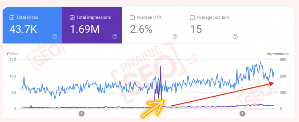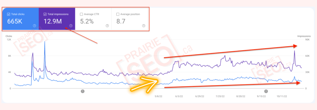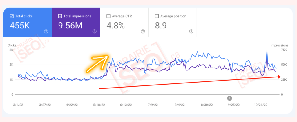 Here you can see on this website, even after the recent google’s helpful content core update and search spam update, traffic and impressions just boom.